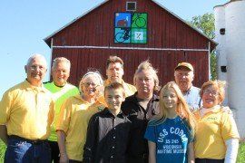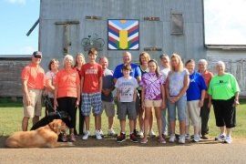 Both the Engel family and Shawano Pathways believe in ‘MOO-VING FORWARD.” Thus, the name for quilt number 351. Located on W7713 Broadway Ave. the quilt showcases a guernsey, (the Engel family’s ‘cow of choice’) and footprints and wheels (Shawano Pathways suggested method of movement) Bob Engel’s great grandfather homesteaded on this property, and his grandfather & father continued to farm here. Bob and Bonnie took over the farm in 1977, showing guernsey cattle at County & State Fairs for year. All of their children were in 4-H and the showing of cattle continues to this day.